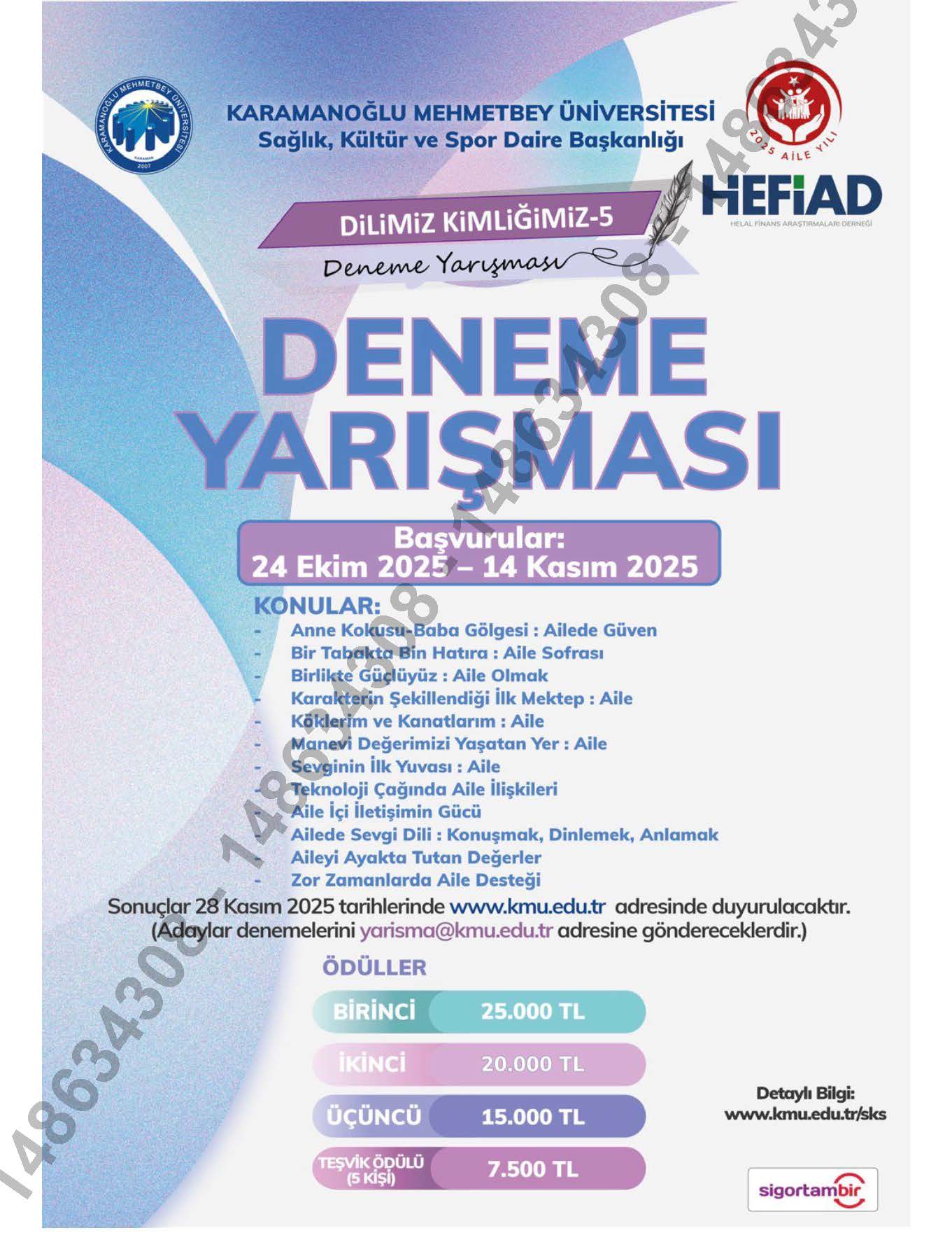 Dilimiz Kimliğimiz-5 Deneme Yarışması Karamanoğlu Mehmet Bey Üniversitesi Yayınlanma Tarihi: 30-09-2025