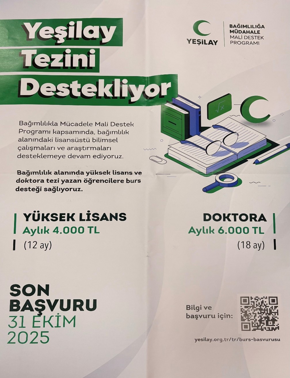 Söz konusu burs programına başvurular, 01 – 31 Ekim 2025 tarihleri arasında https://www.yesilay.org.tr/tr/burs-basvurusu adresi üzerinden yapılabilecektir.